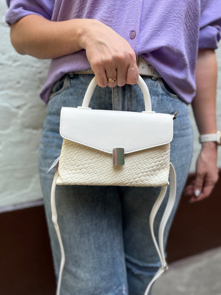 BOLSO BLANCO CON HERRAJES PLATEADOS