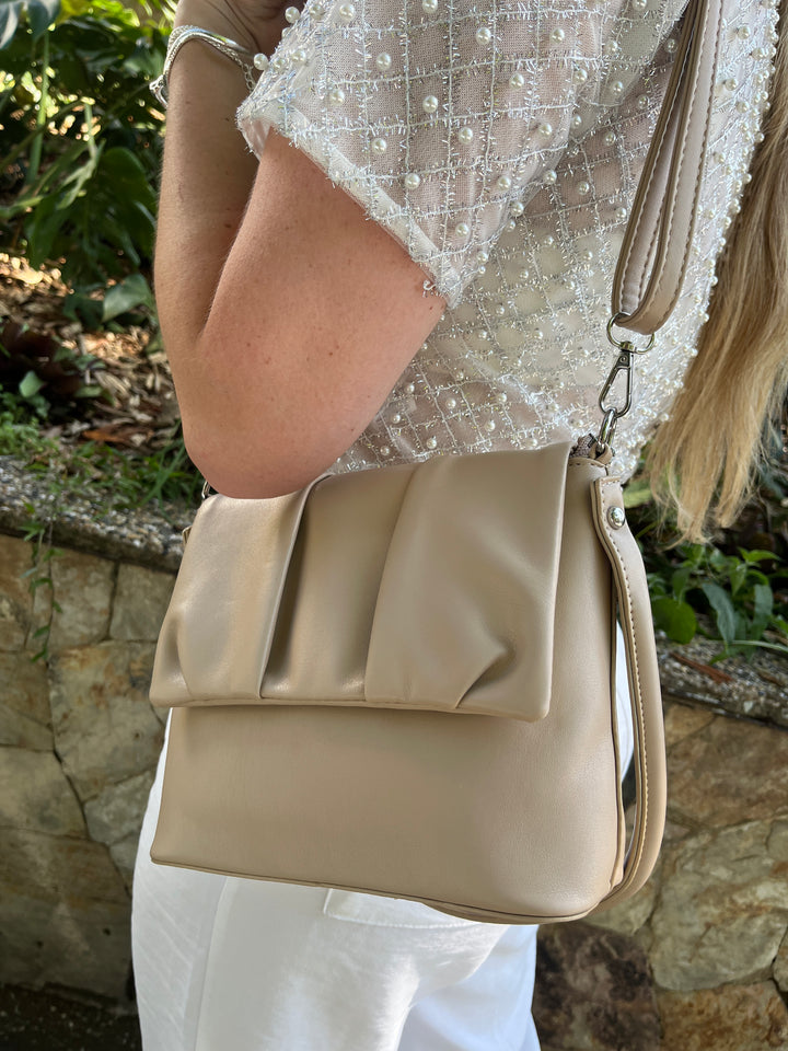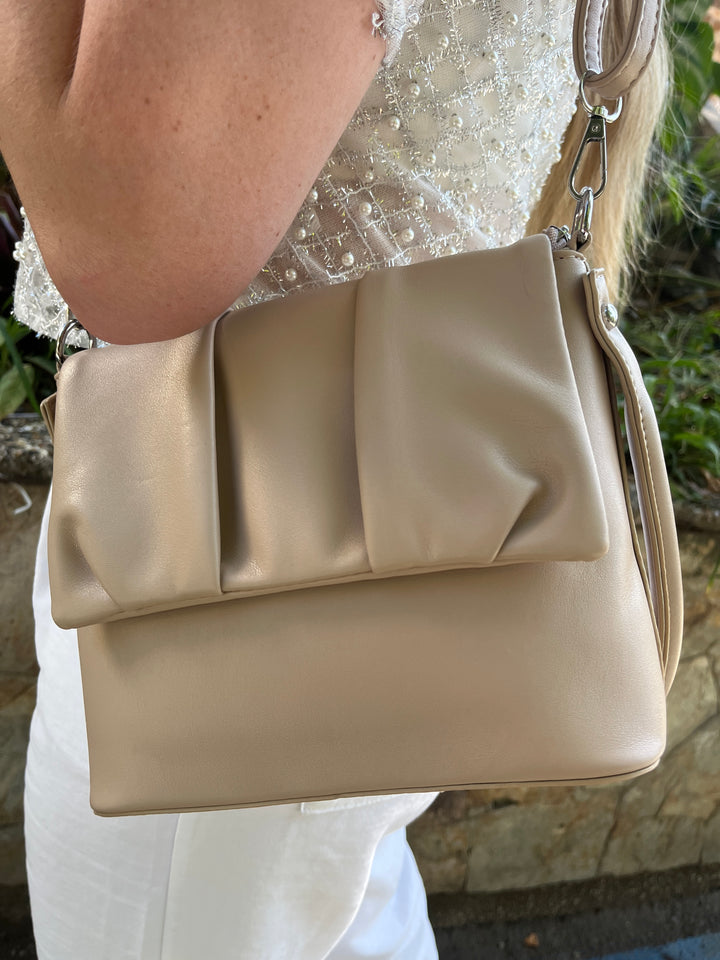BOLSO BEIGE ELEGANTE CON PLIEGUES Y CORREA