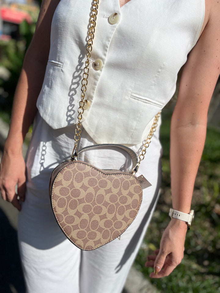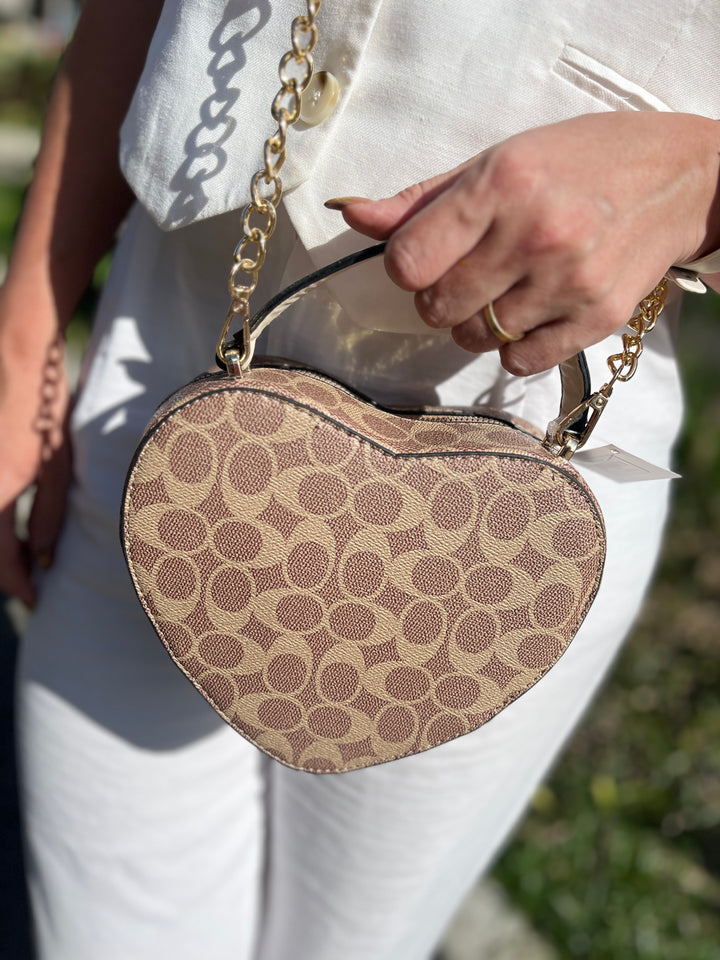 BOLSO CAFE DE CORAZON CON HERRAJES DORADOS