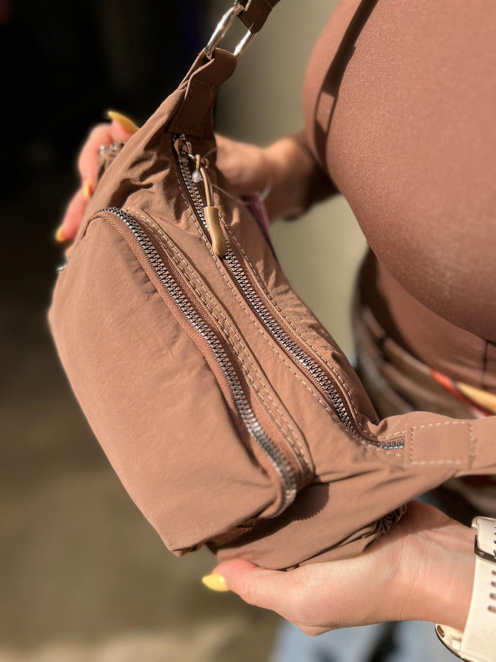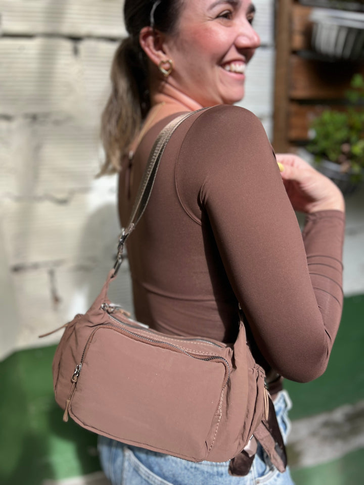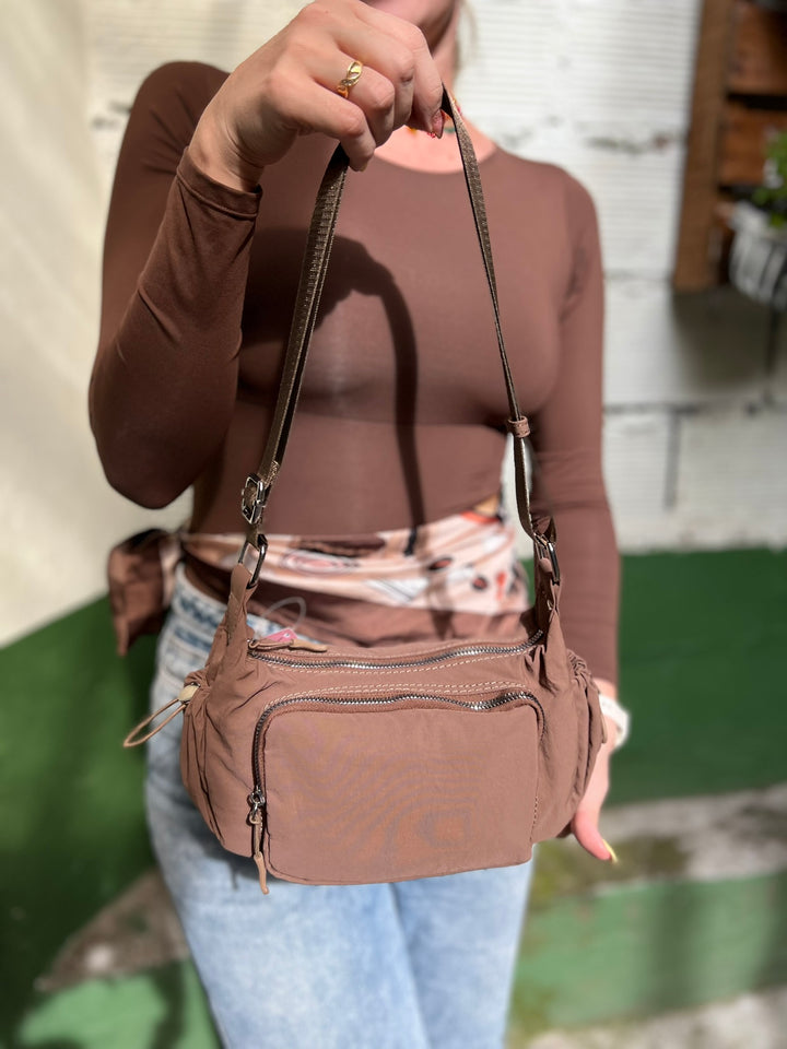 BOLSO DE TELA IMPERMEABLE EN TONO CAFE