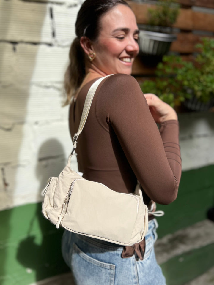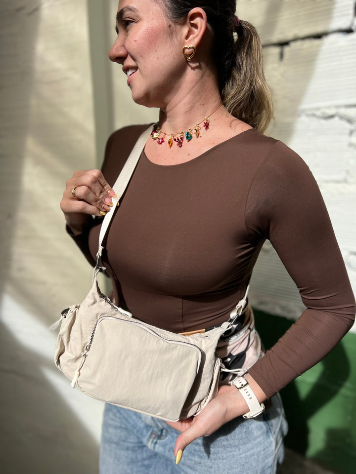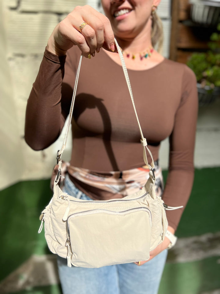 BOLSO EN TELA IMPERMEABLE EN TONO BEIGE