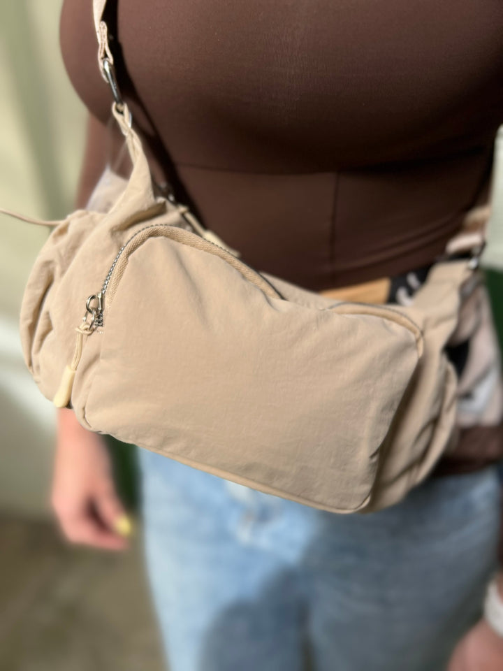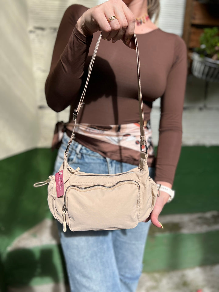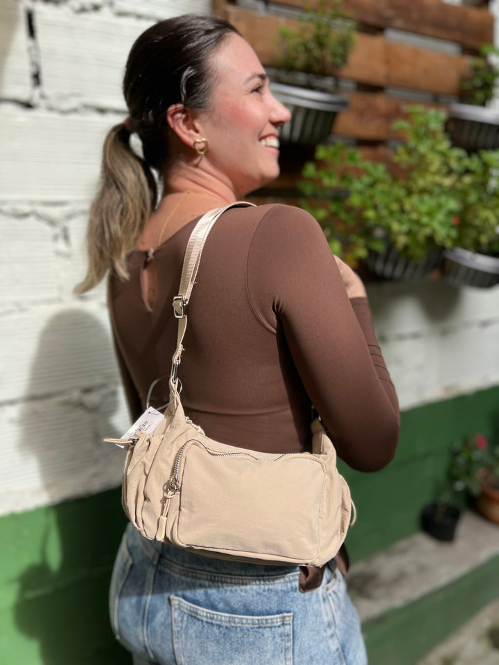 BOLSO EN TELA IMPERMEABLE EN TONO CAFE CLARO