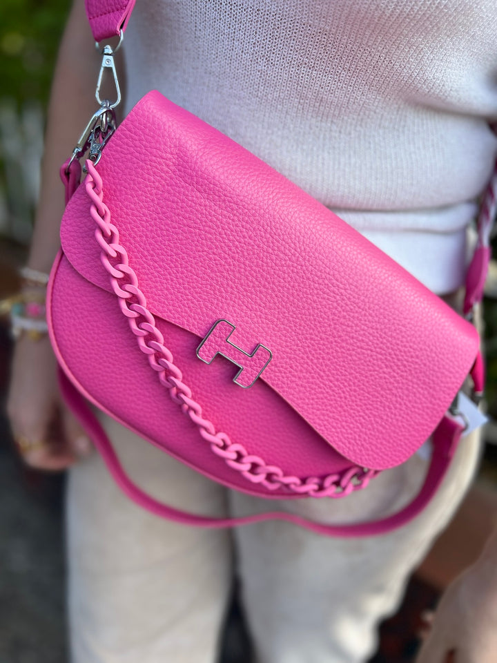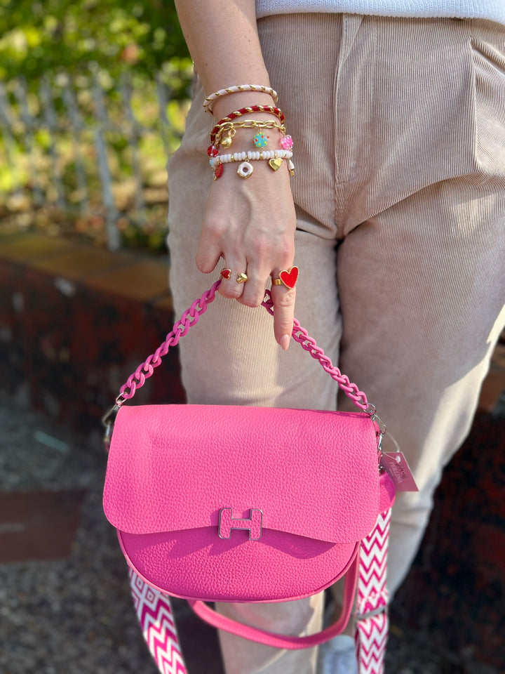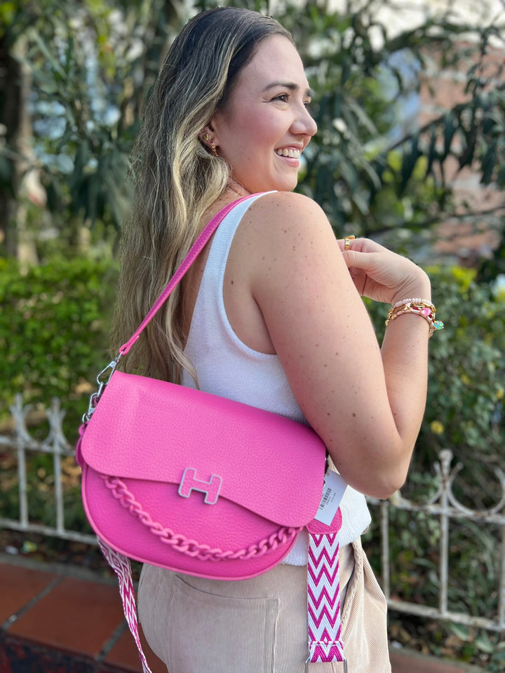BOLSO FUCSIA 3 CORREAS HERRAJES PLATEADOS