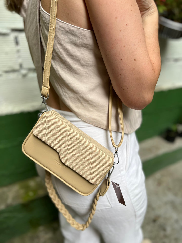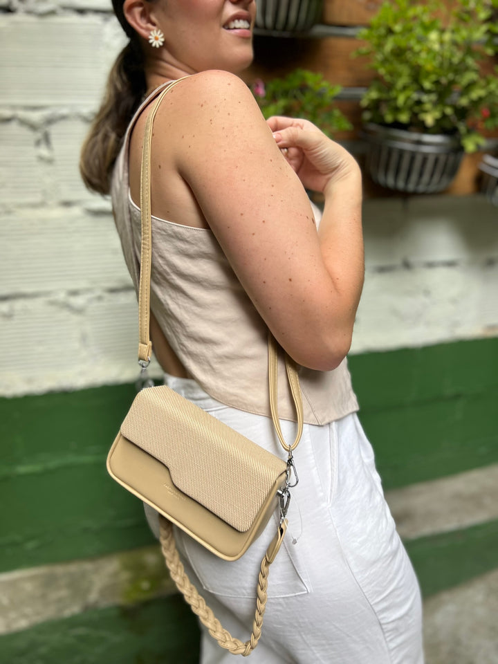 BOLSO MODERNO COLOR TAUPE CON 2 CORREAS