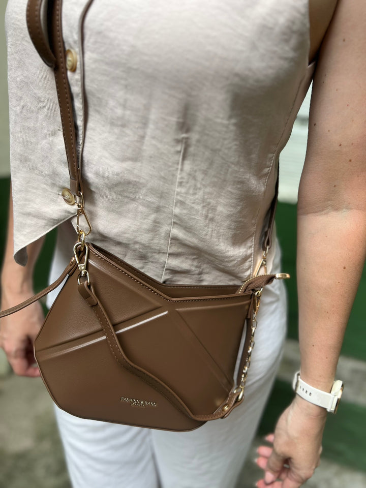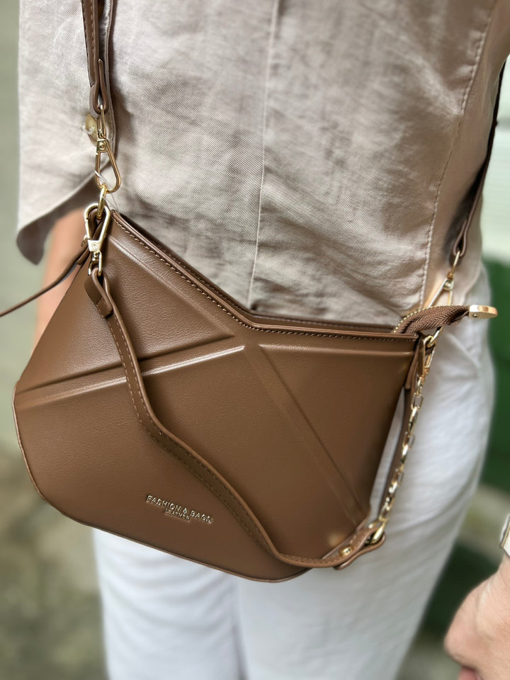 BOLSO MODERNO EN COLOR CAFE CON 2 CORREAS