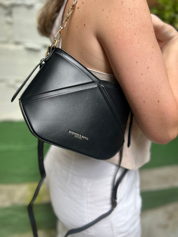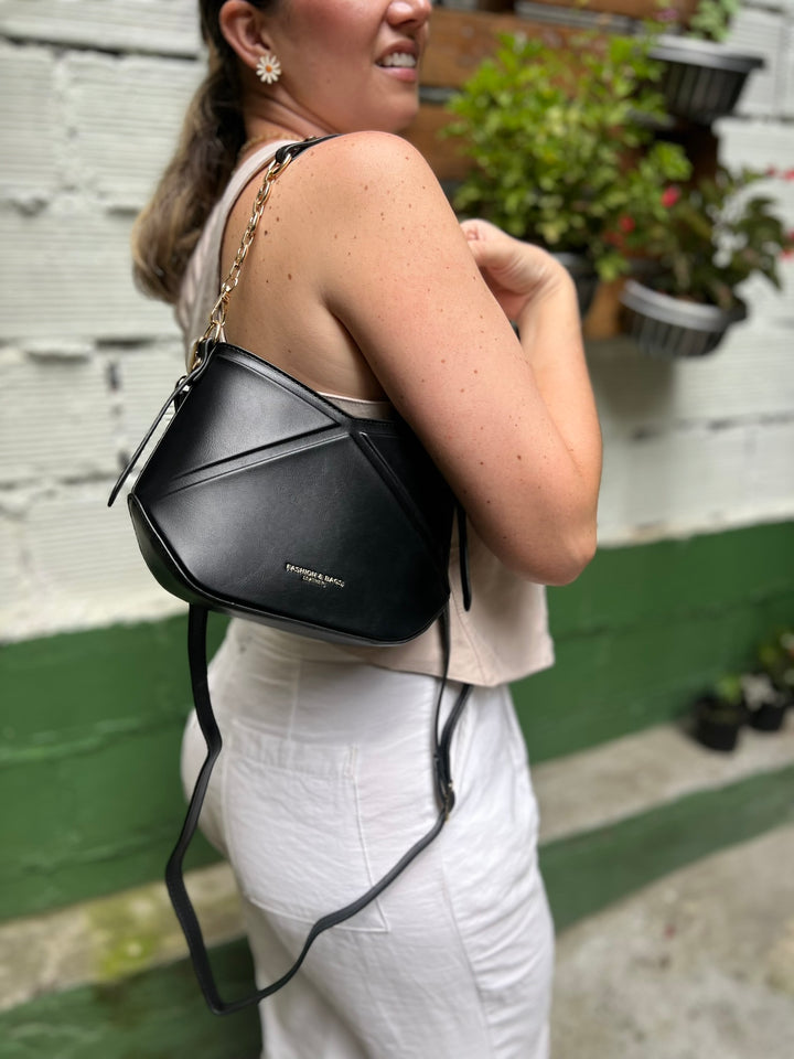 BOLSO MODERNO EN COLOR NEGRO CON 2 CORREAS