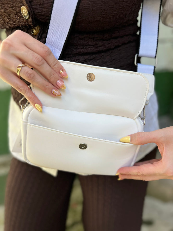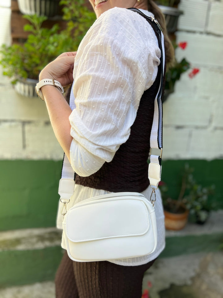 BOLSO MODERNO EN TONO BLANCO CON CORREA EN RIATA