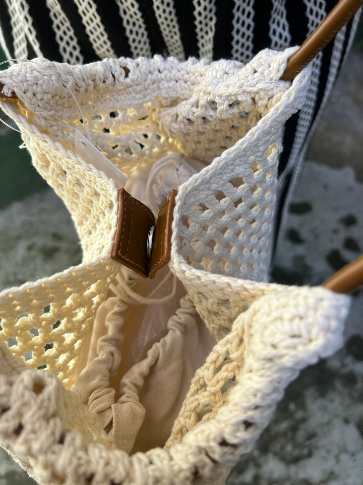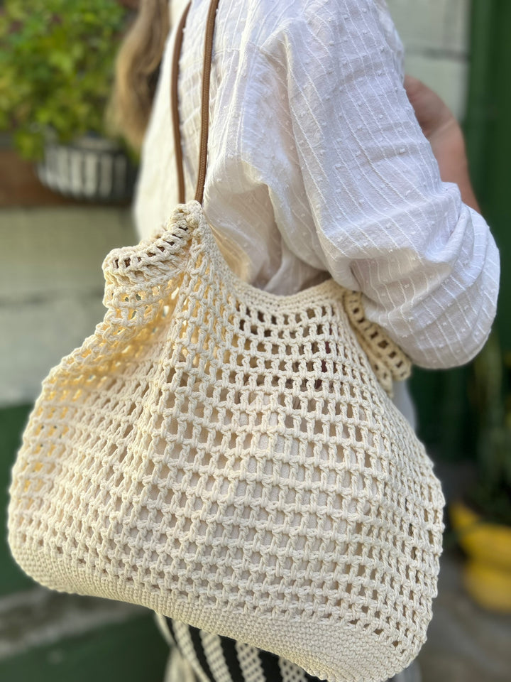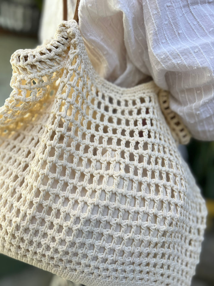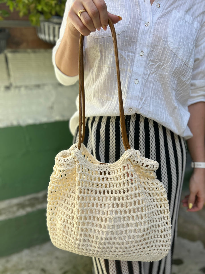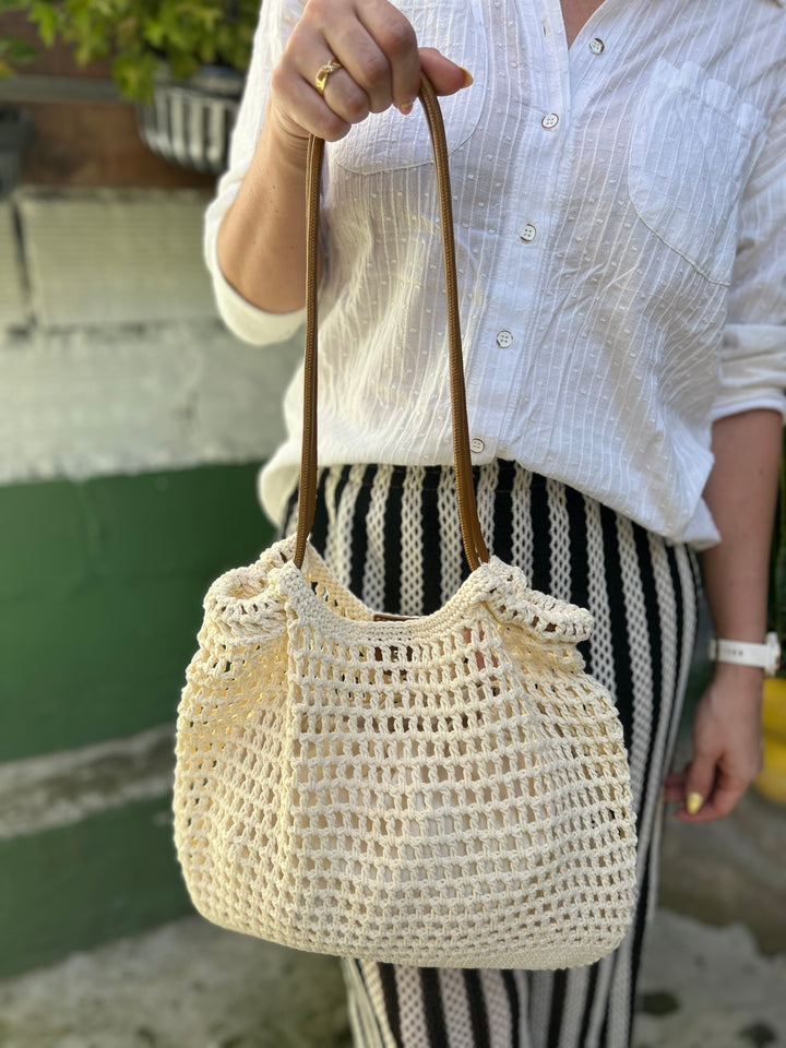 BOLSO TEJIDO EN TONO BEIGE CON FORRO