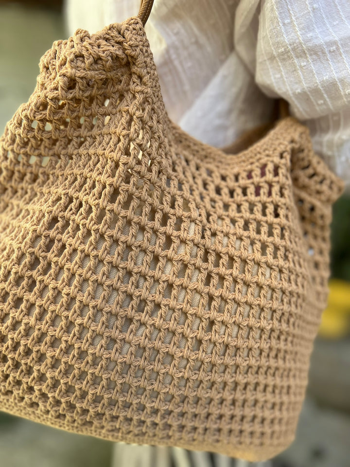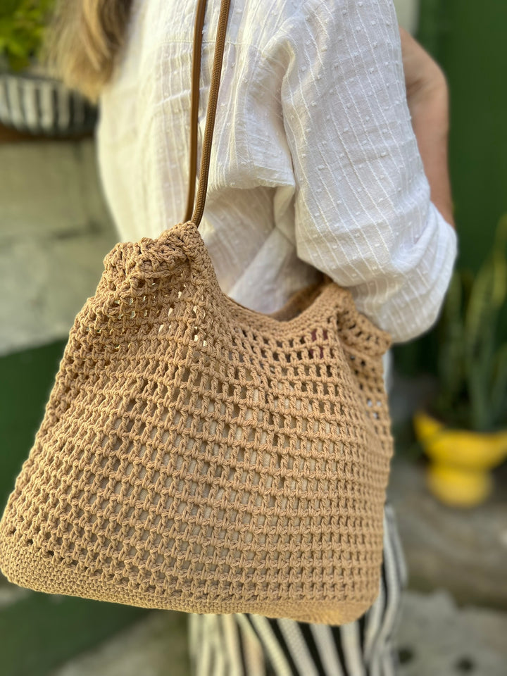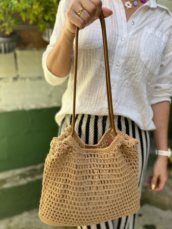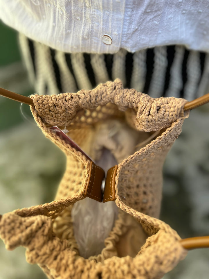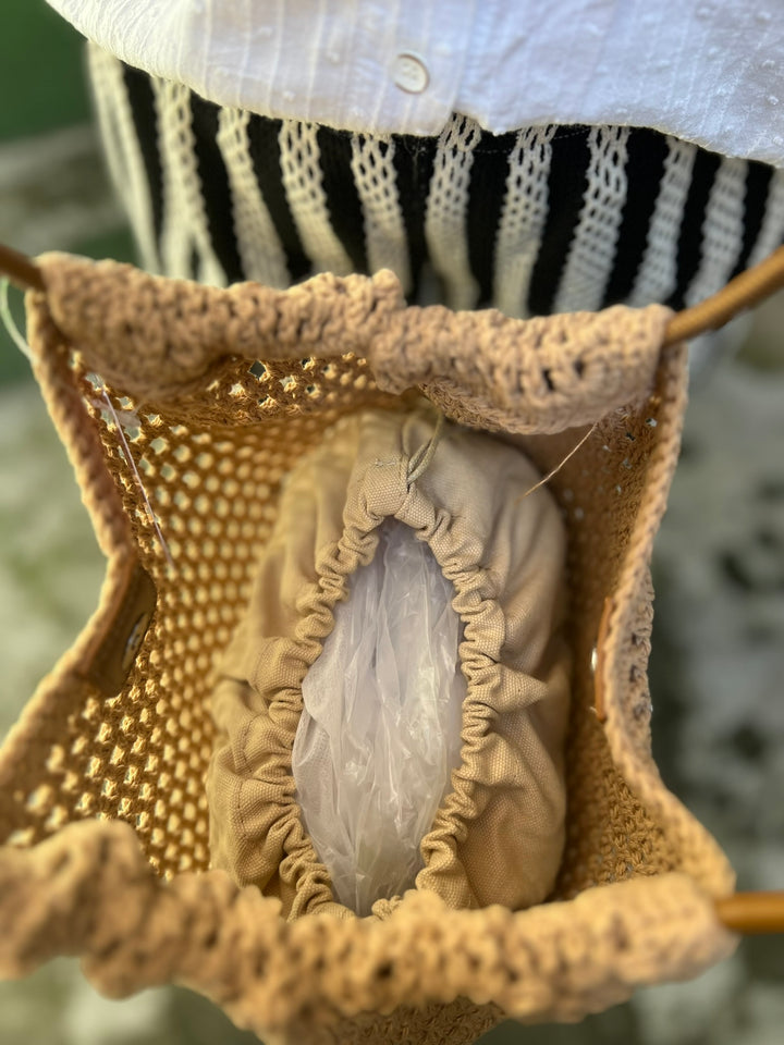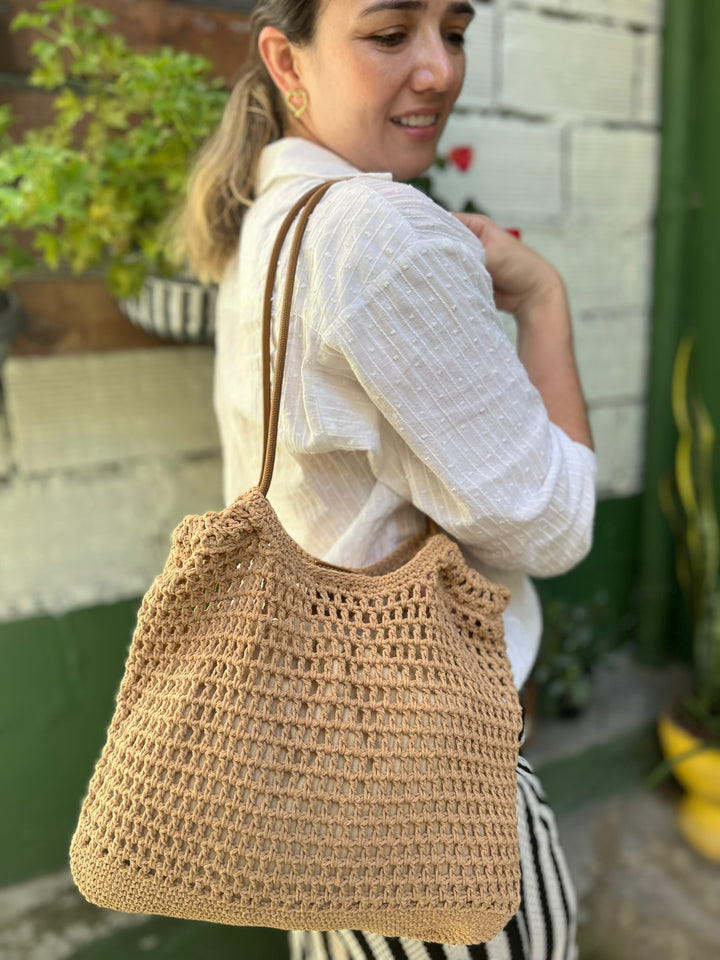 BOLSO TEJIDO EN TONO CAFE CON FORRO
