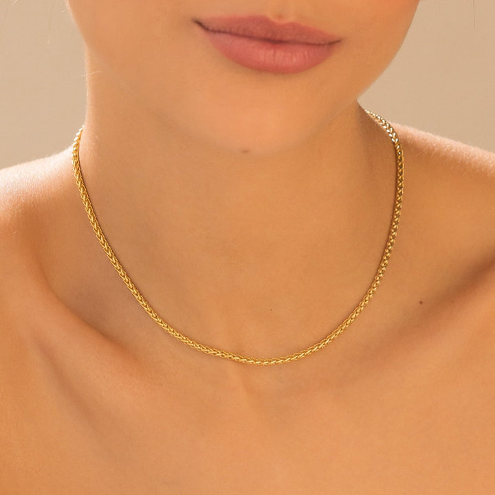 - Cadenas del collar en bronce con baño de oro de 24k.