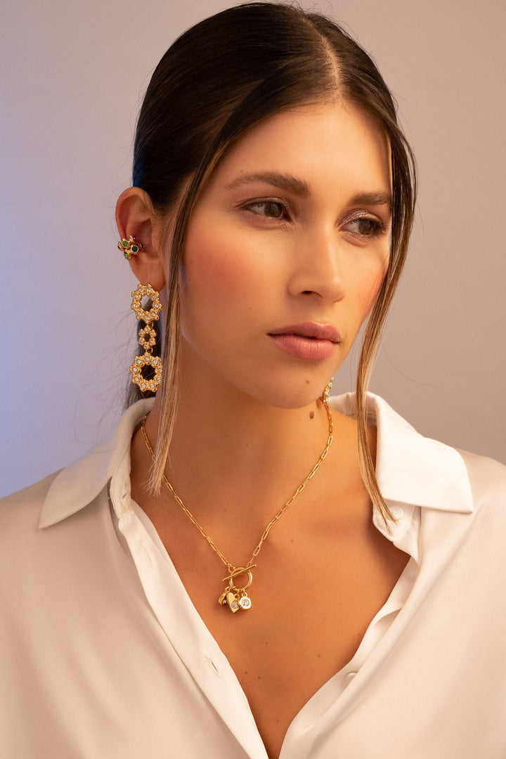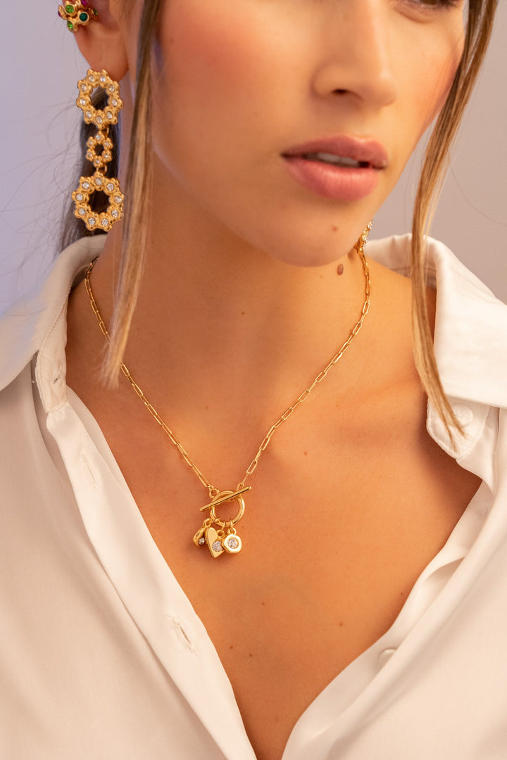 - Dijes del collar en Zamak (aleación de metales) con baño de oro de 24k.