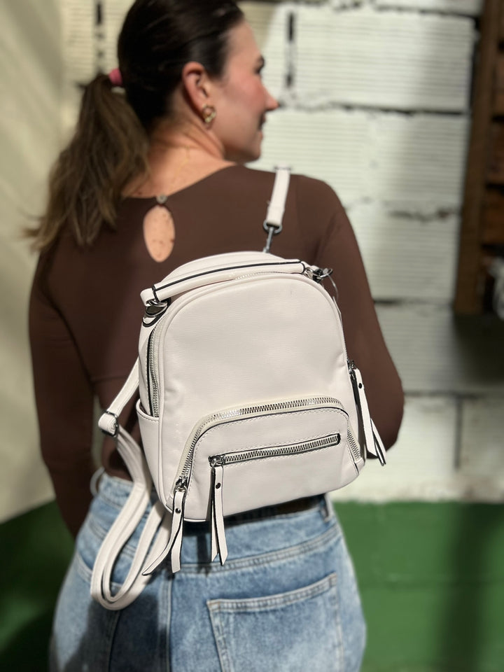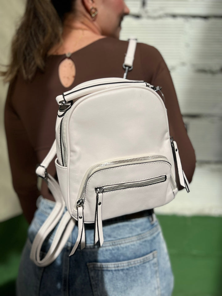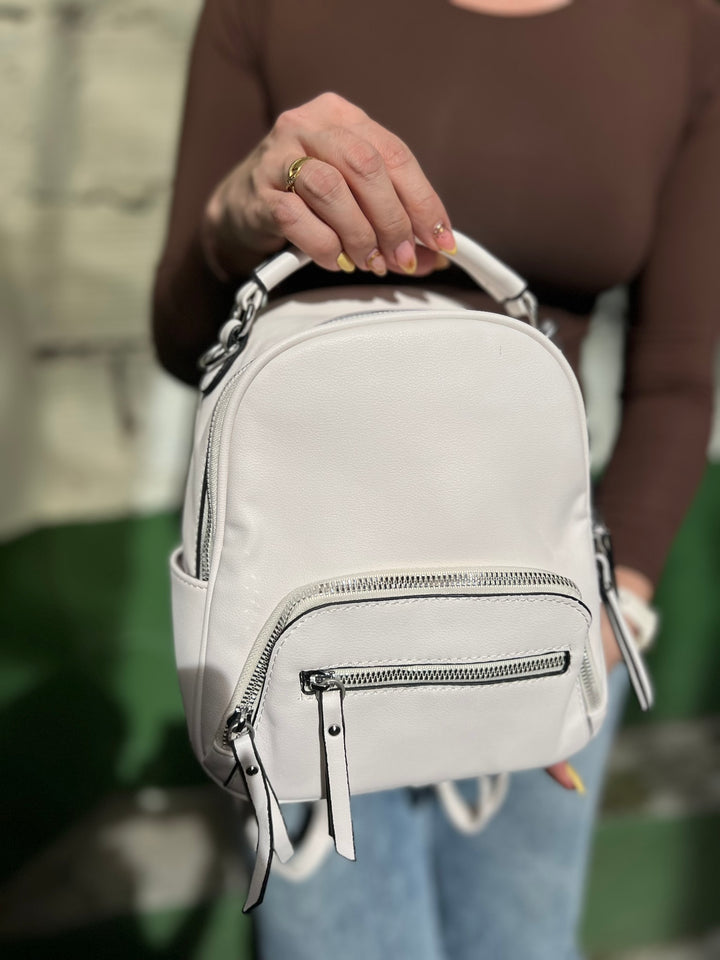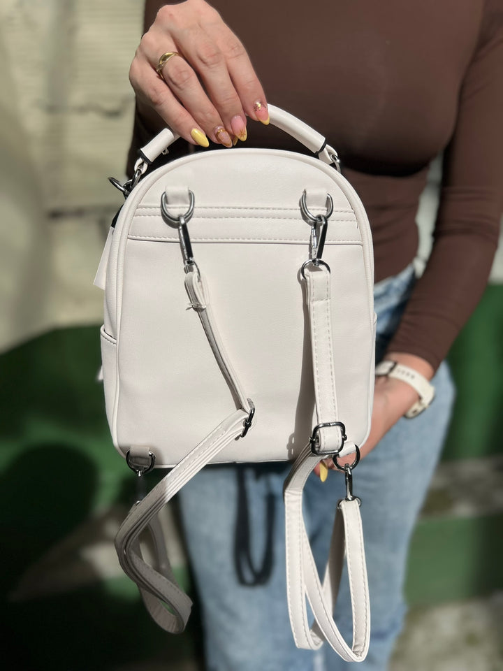 MORRAL MINI EN TONO BLANCO CON HERRAJES PLATEADOS