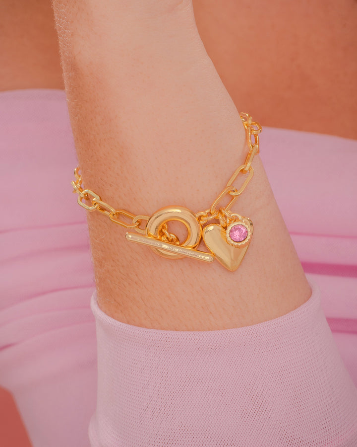 Pulsera Broche Corazón Cristal + Aretes