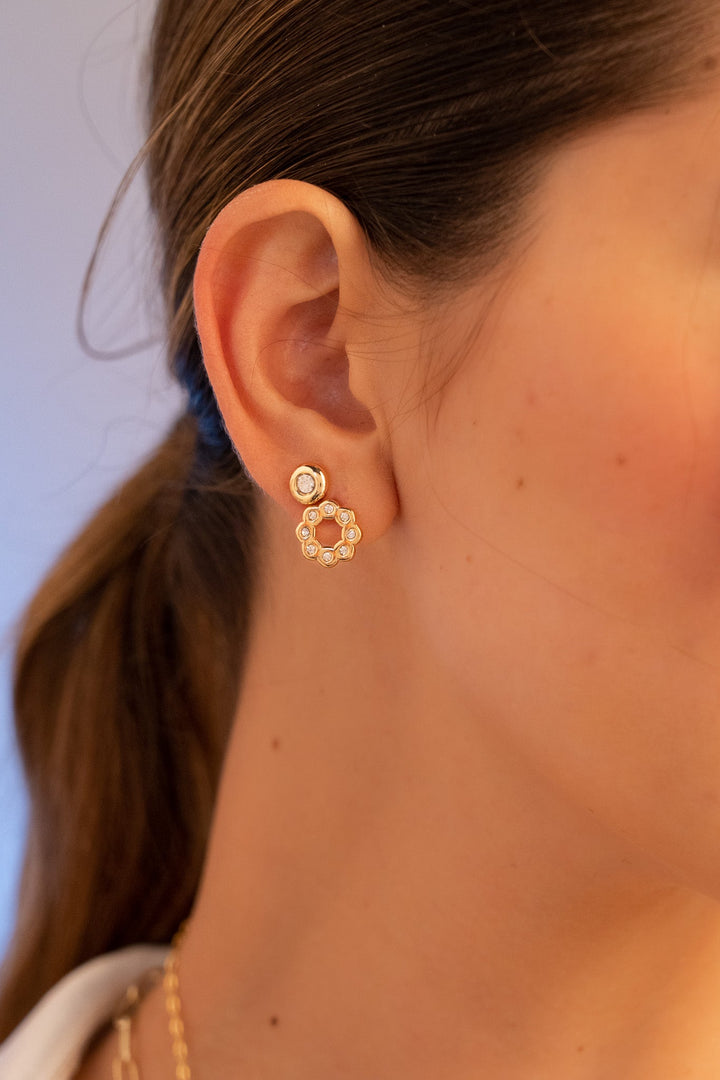 - Aretes elaborados Zamak (aleación de metales) con baño de oro de 24k.