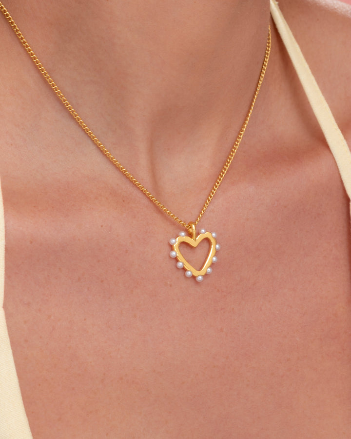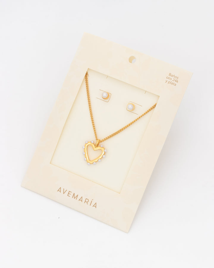 Set Collar Corazón Perla + Aretes Perla