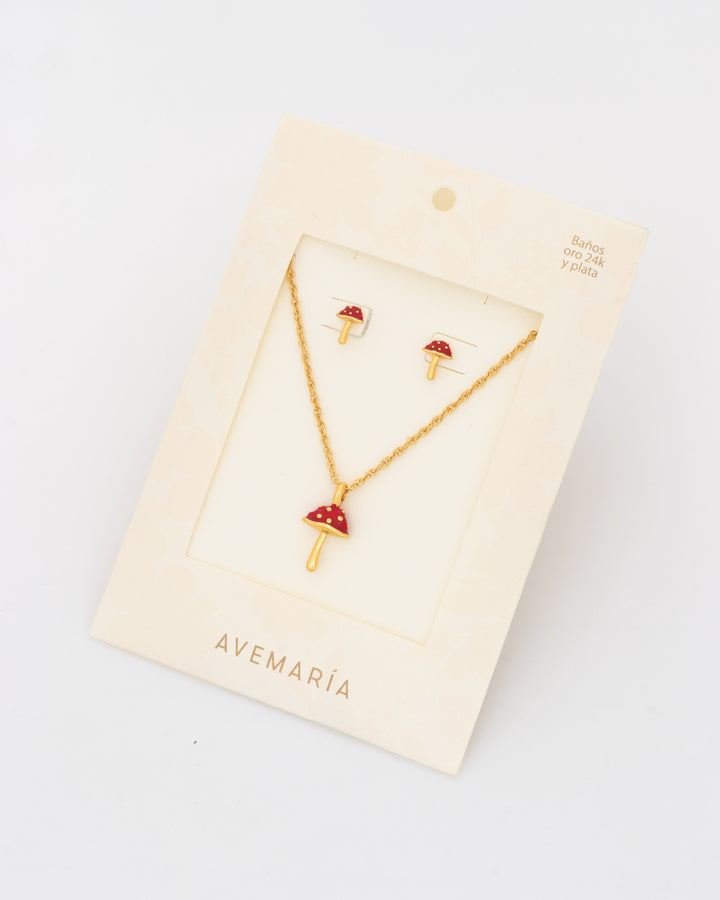 - Incluye aretes tipo topos en forma de hongo (aretes pequeños).