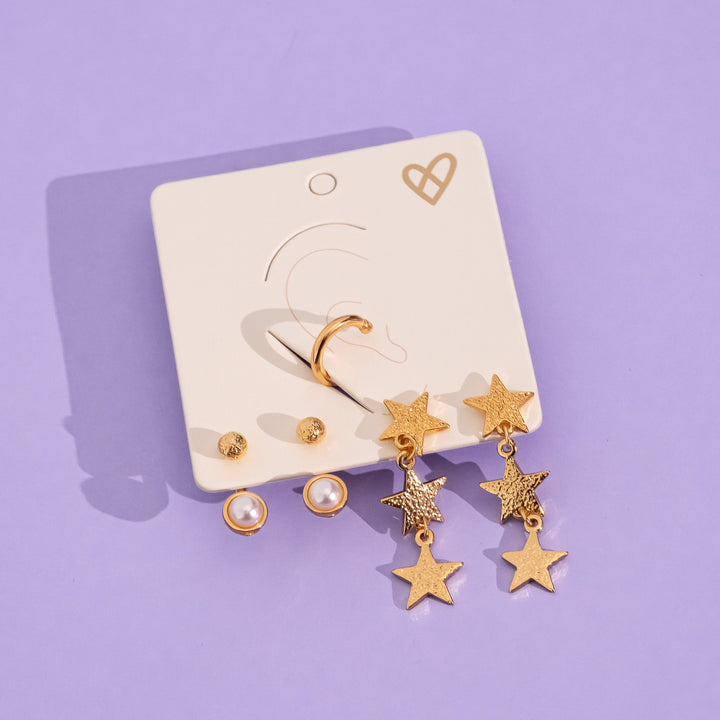 Set De Aretes De Estrella + Earcuff