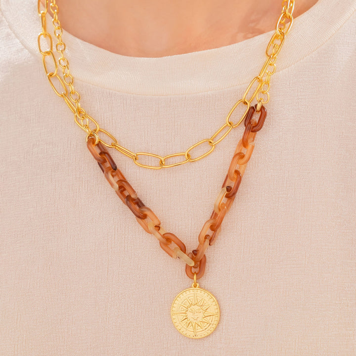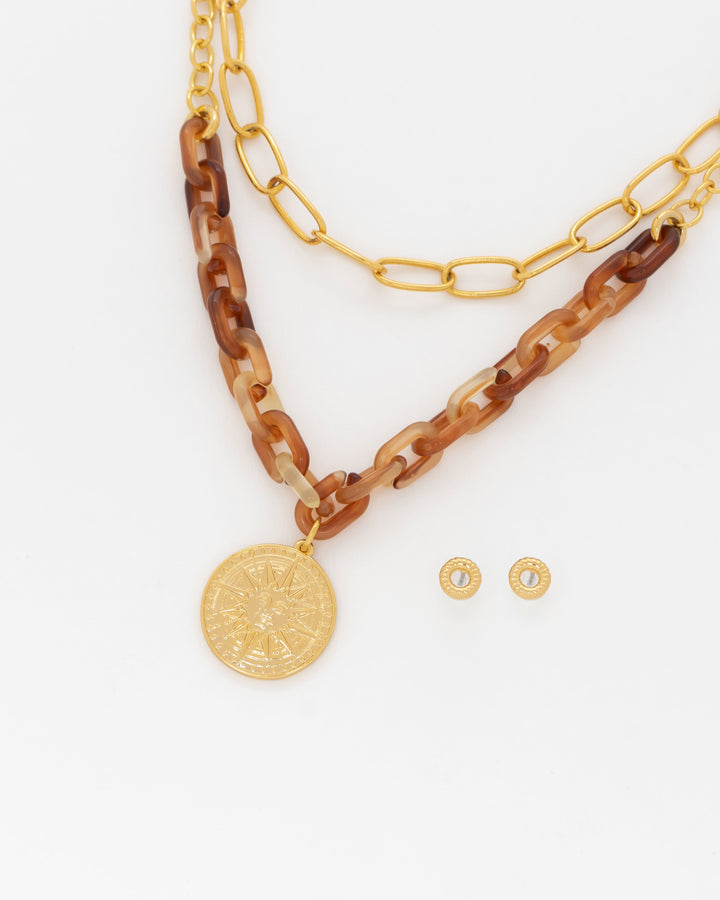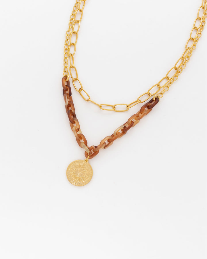 - Cadenas del collar en bronce con baño de oro de 24k.