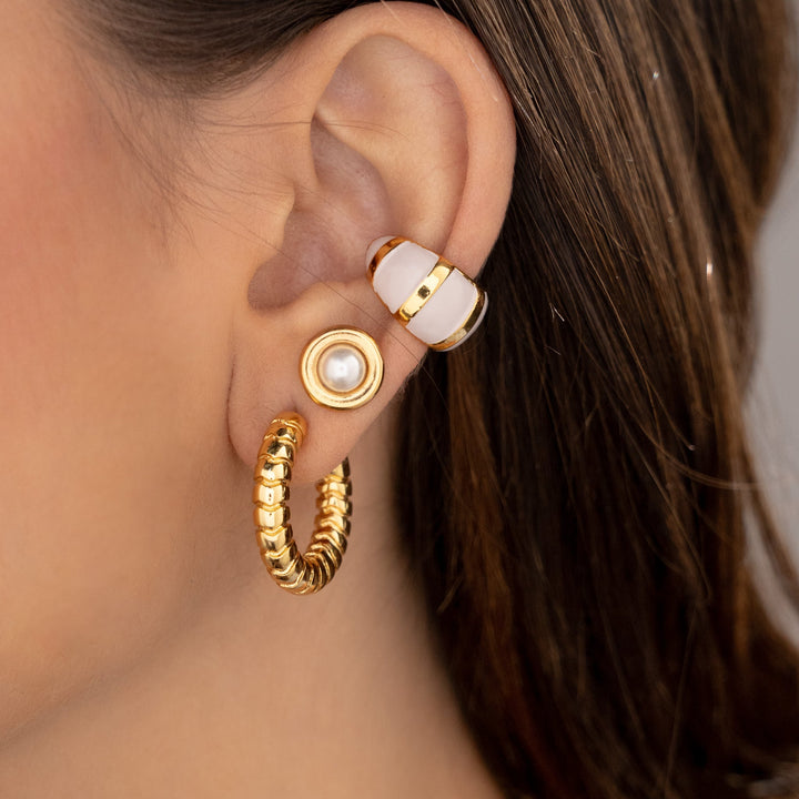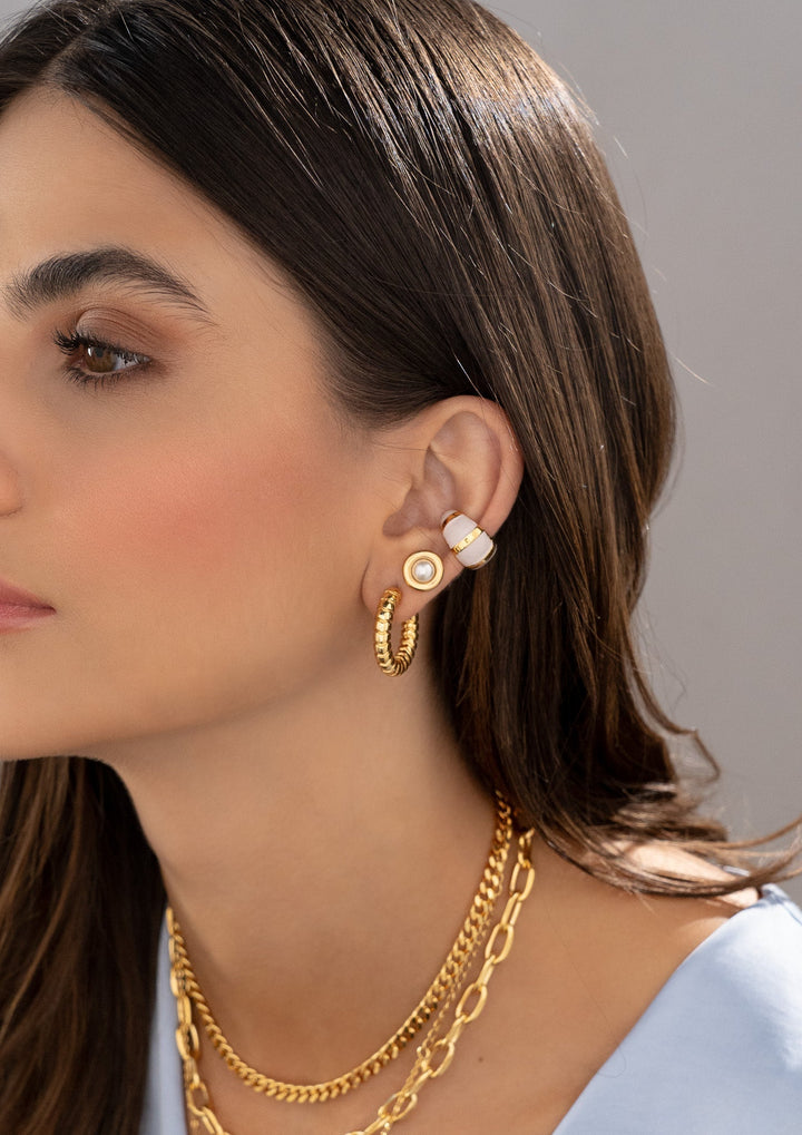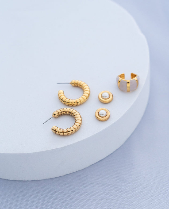 - Incluye: 1 par de candongas, 1 par de topos y 1 earcuff.