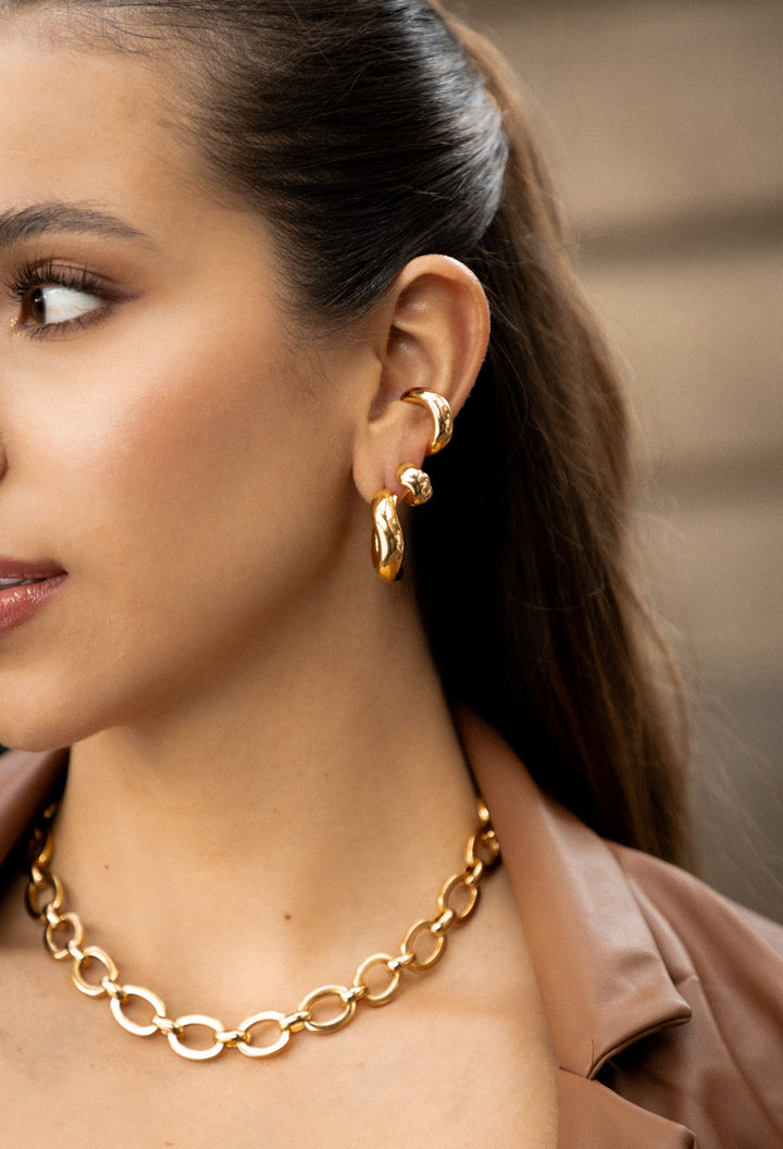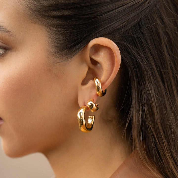 - Incluye: 1 par de candongas, 1 par de topos y 1 earcuff.