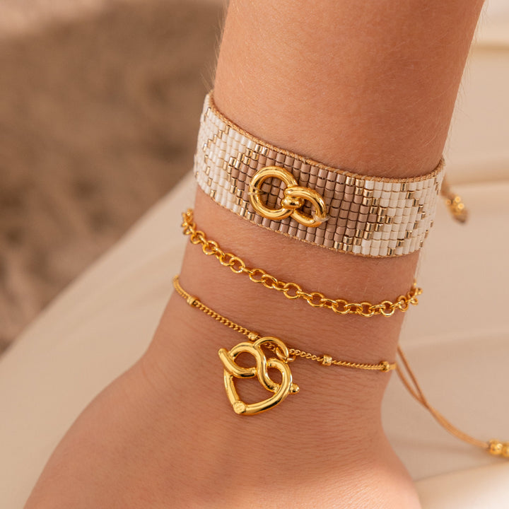 Set X3 Pulseras Tejidas Eslabon Lazo + Aretes