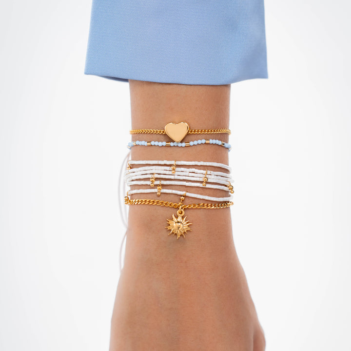 - Dijes de la pulsera en Zamak (aleación de metales) con baño de oro de 24k.